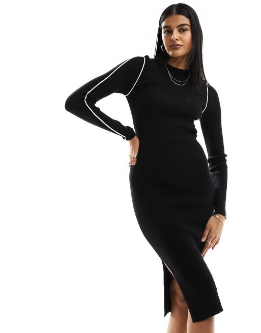 Pieces ribbed bodycon midi dress in black with white contrast piping Very well made.
