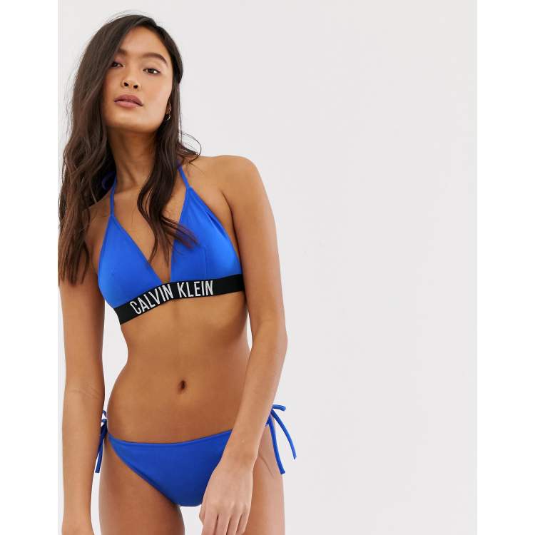 Calvin Klein logo band triangle bikini top in blue ASOS Very well made.
