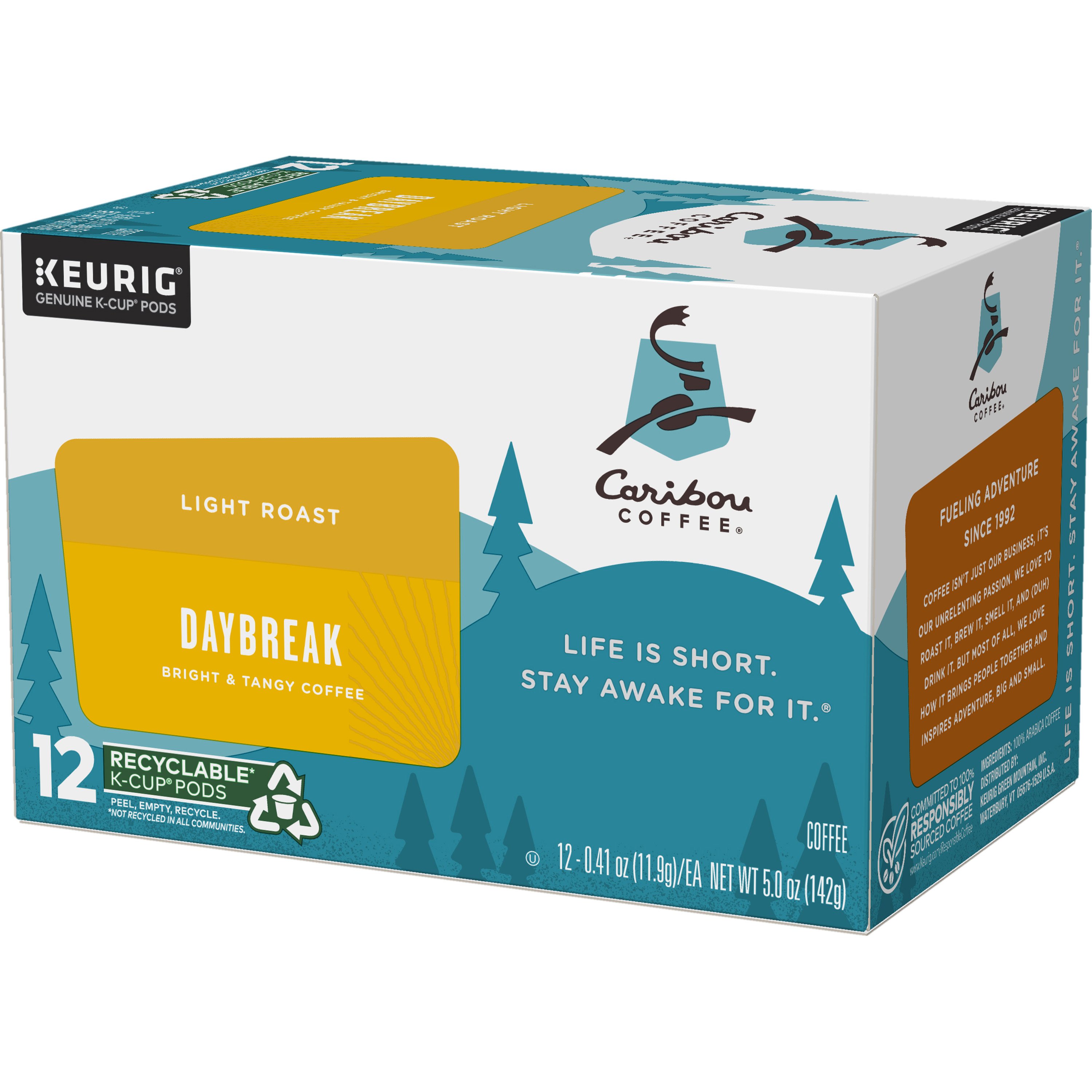 Caribou Coffee Day Break Light Roast Coffee K Cup Pods 12 0.41 Oz Very well made.