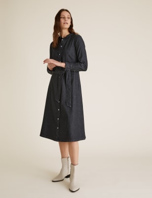 Denim Belted Midi Shirt Dress M S Collection M S Very well made.