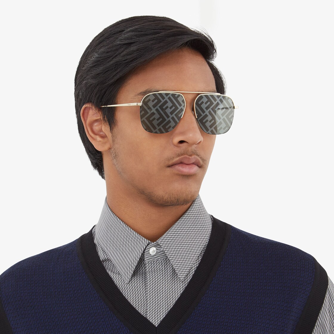 FENDI EYEWEAR O Lock Oversized Square Metal Sunglasses in Gold Very well made.