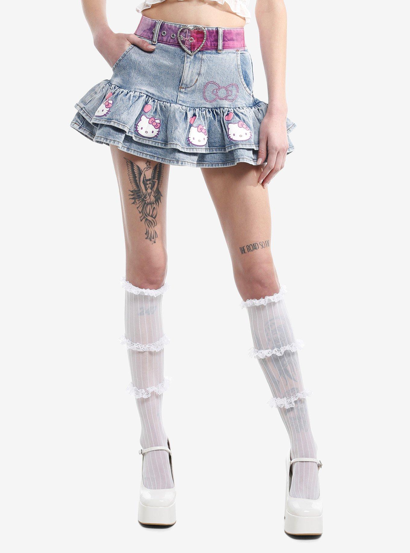 Hello Kitty Pink Heart Belt Denim Mini Skirt Hot Topic Very well made.