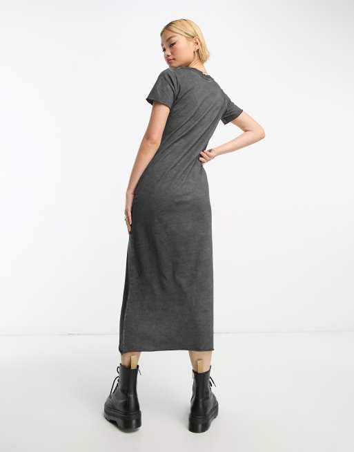 ASOS DESIGN T shirt kjole i gr syrevaske med dyb V hals ASOS Very well made.