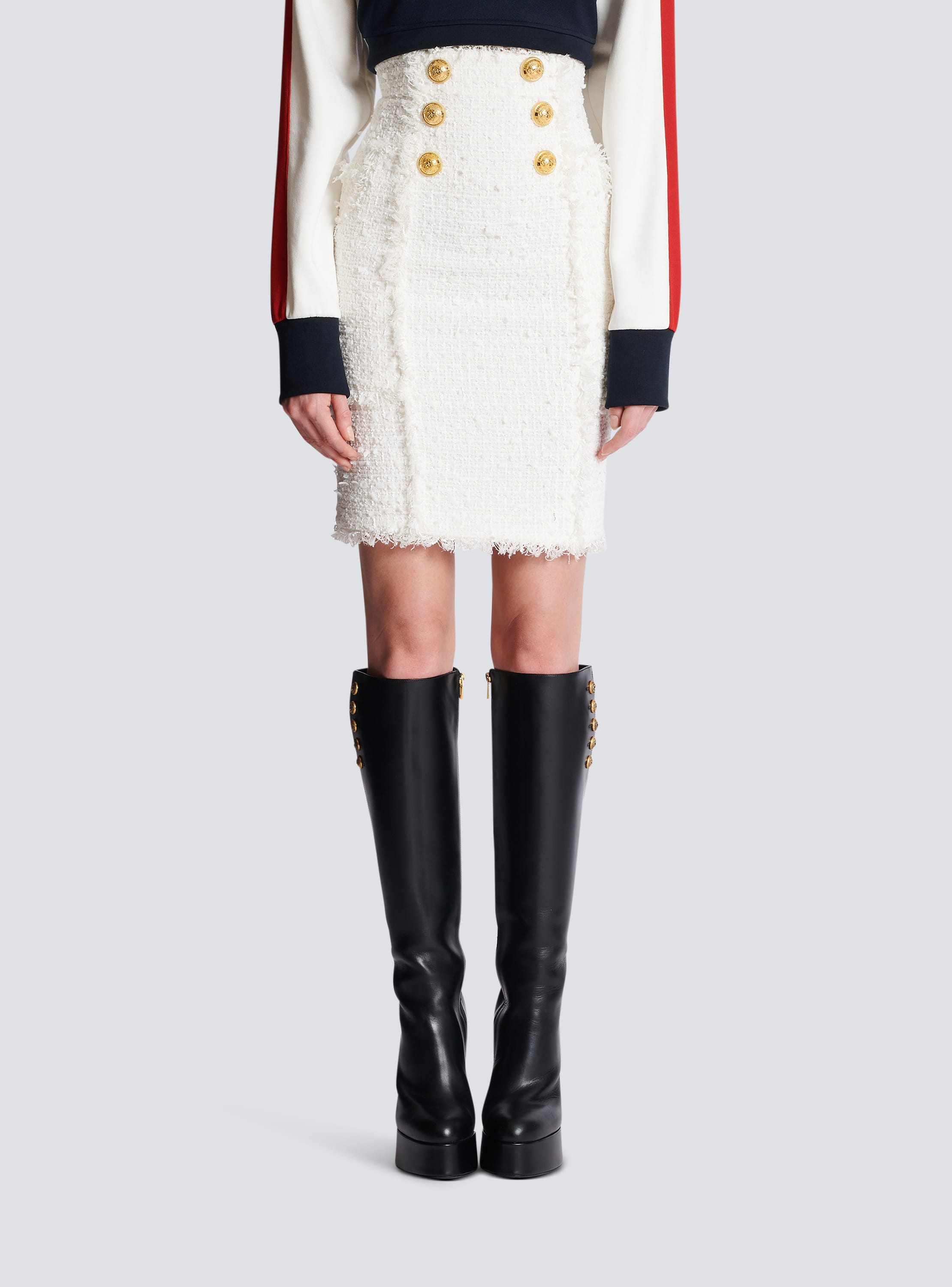 Jupe crayon en tweed de laine pour femme mini jupe l gante poches boutons dor s mince bureau Harajuku automne hiver O360 Very well made.