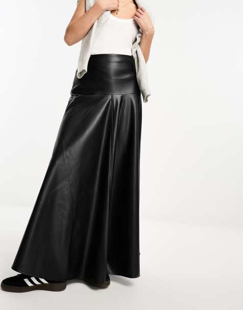 Topshop leather look clean maxi skirt in black Very well made.