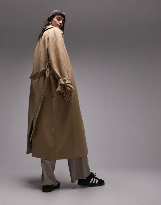 Topshop long lined belted brushed trench coat in honey ASOS Very well made.