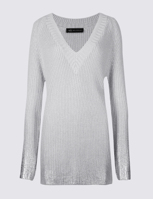 Cotton Blend V Neck Longline Jumper M S Collection M S Very well made.