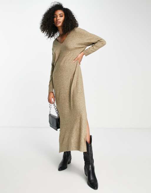 Mango knitted maxi dress with v neck in camel Very well made.