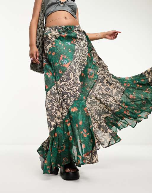 Free People paisley spliced print maxi boho skirt in deep green ASOS Very well made.