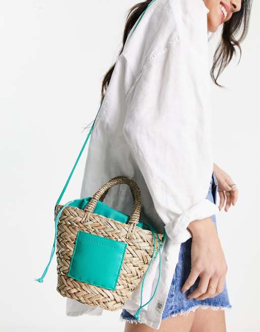 South Beach Petit sac bandouli re en paille Vert vif ASOS Very well made.