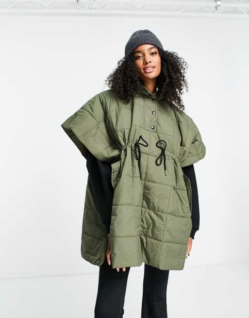 Selected Femme hooded poncho jacket with quilting and tie waist in khaki Very well made.