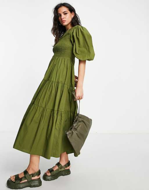 Black Shirred Sweetheart Puff Sleeve Midi Dress New Look Very well made.