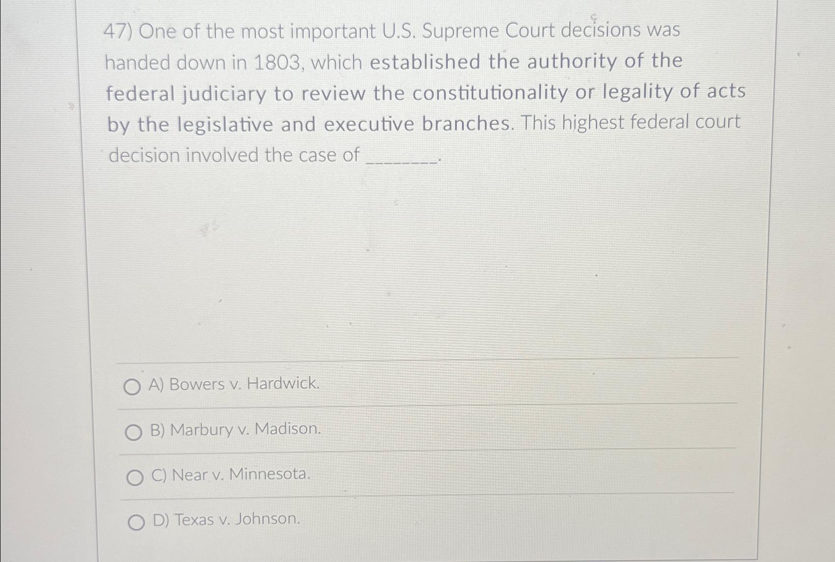 Solved One of the most important U.S. Supreme Court Chegg Very well made.