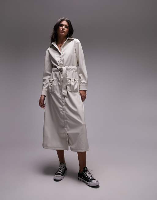 Topshop soft touch faux leather midi belted shirt dress in ecru Very well made.