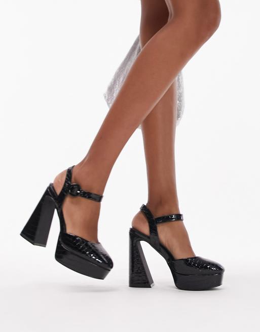 Topshop Effy heeled pumps in black croc Very well made.