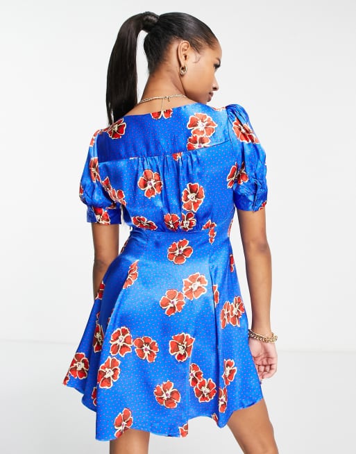 Topshop Petite floral spot mini tea dress in cobalt Very well made.