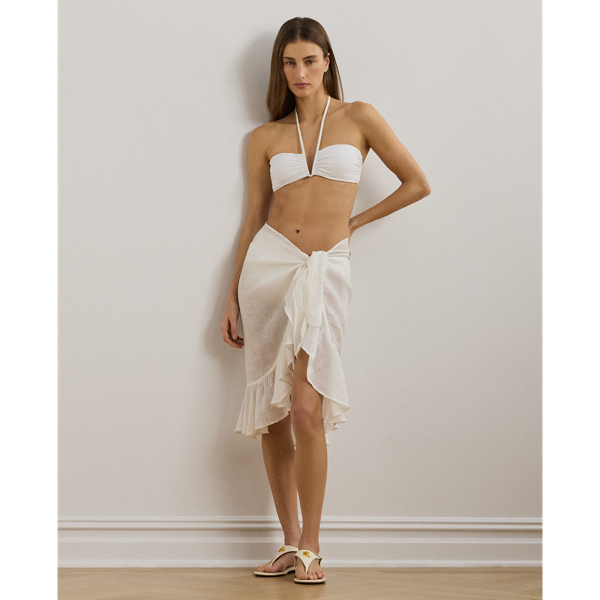 Lauren Ralph Lauren Ruffle trim Cotton linen Wrap Skirt In White Very well made.