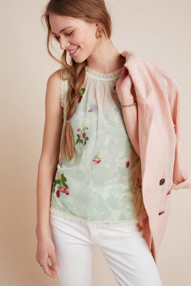 Anthropologie By Anthropologie Beaded Embroidered Flutter Sleeve Very well made.