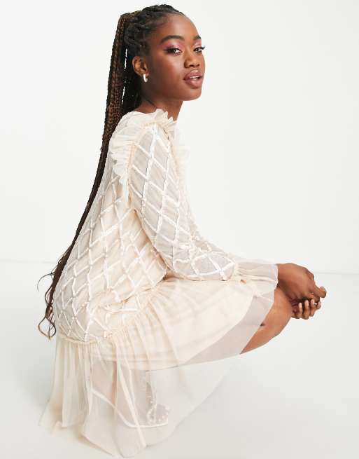 Little Mistress embellished diamond tulle mini dress in cream ASOS Very well made.