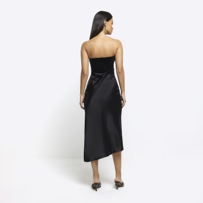Black satin bandeau midi dress River Island Very well made.