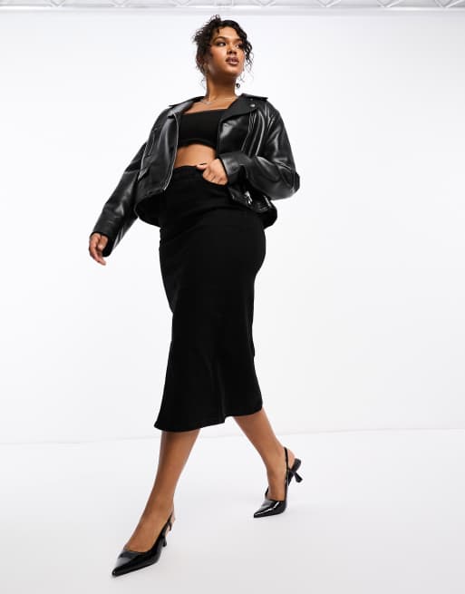Vero Moda Curve denim midi skirt in black ASOS Very well made.